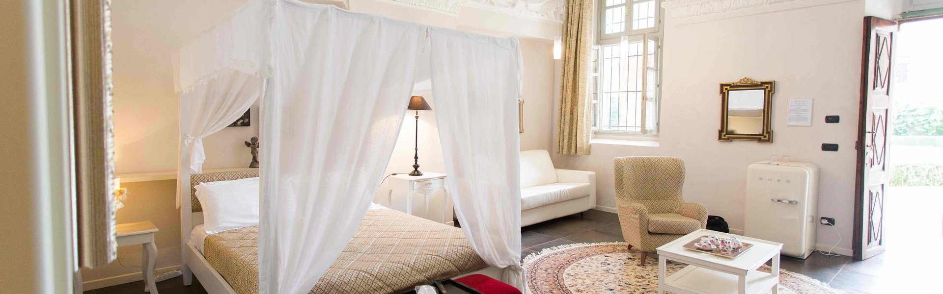 Crossing the threshold of the Monastero di Cherasco, you will be welcomed into a refined suite, where elegance and silence create an intimate and enveloping atmosphere. Awaiting you is a welcome gift in your room and a bottle of wine, to start your stay with a special toast.